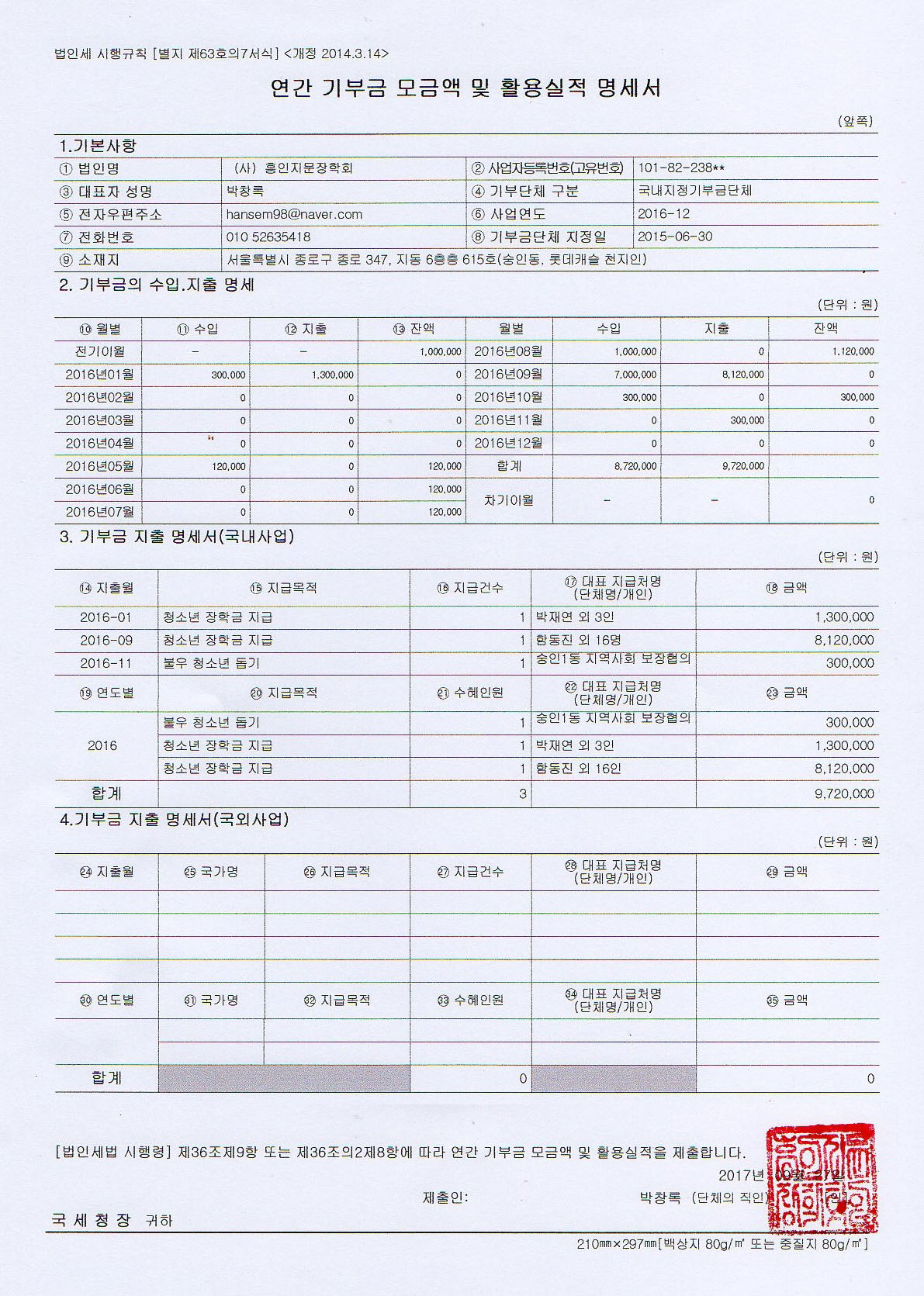 2016³âµµ ¿¬°£ ±âºÎ±Ý ¸ð±Ý¾× ¹× Ȱ¿ë½ÇÀû ¸í¼¼¼