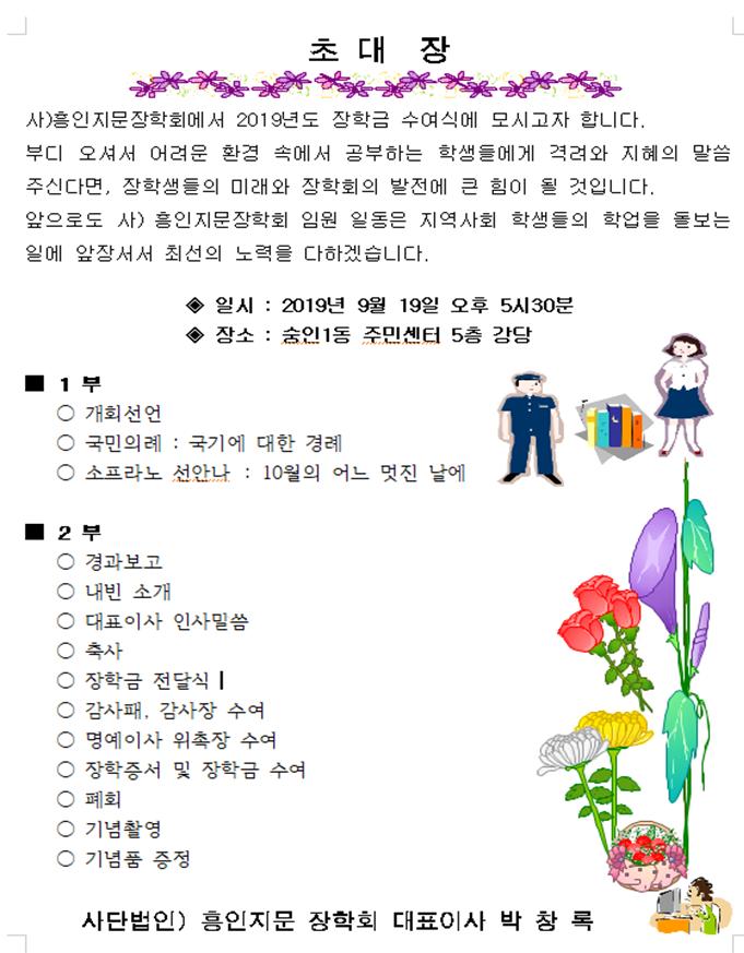 2019³âµµ ÀåÇÐ±Ý ¼ö¿©½Ä ÃÊ´ëÀå